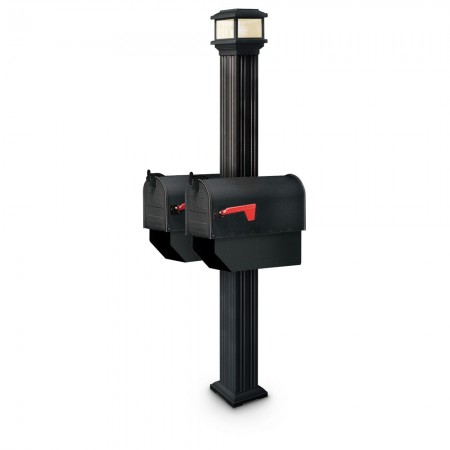 Compliment your entranceway with the attractive and landscape-friendly 1812 Estate Series Mailboxes and Light Posts. This Lawrence residential mailbox system features two Medium Rural mailboxes, an illuminated top finial, and a fluted aluminum pillar. Choose from low voltage, line voltage, and solar lighting. Direct burial post for stability. Includes 2 Medium Rural Mailboxes, 2 newspaper tubes, mounting brackets and hardware, fluted aluminum post, and illuminated finial. WOODEN MOUNTING POST NOT INCLUDED. Black Color